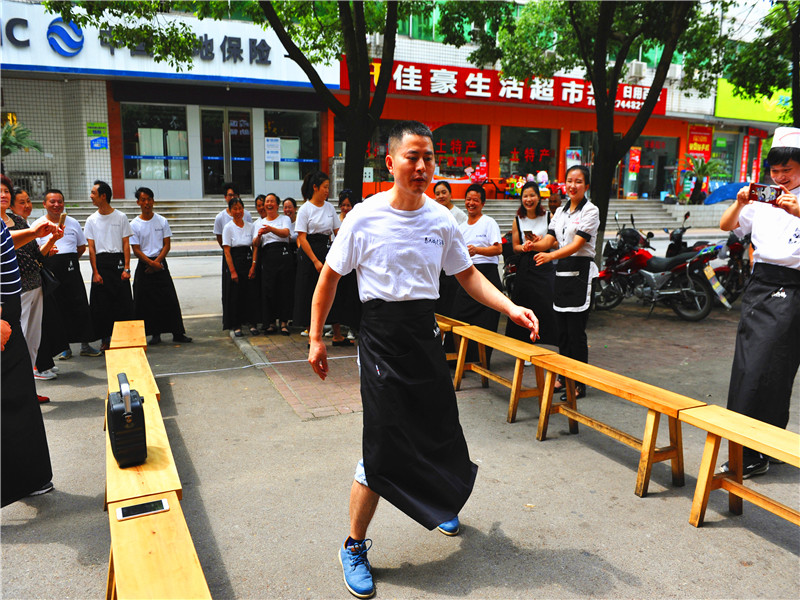 游戲規(guī)則:所有華天城店的家人們各自以獨特方式從事先畫好的A點走到B點。走路的方法原本是單調(diào)而又乏味的,但一條簡單的路 “每人走法不能與別人重復,否則重新再來”的規(guī)則有哪些方法走過去呢?且需要四位裁判同意通過即可。