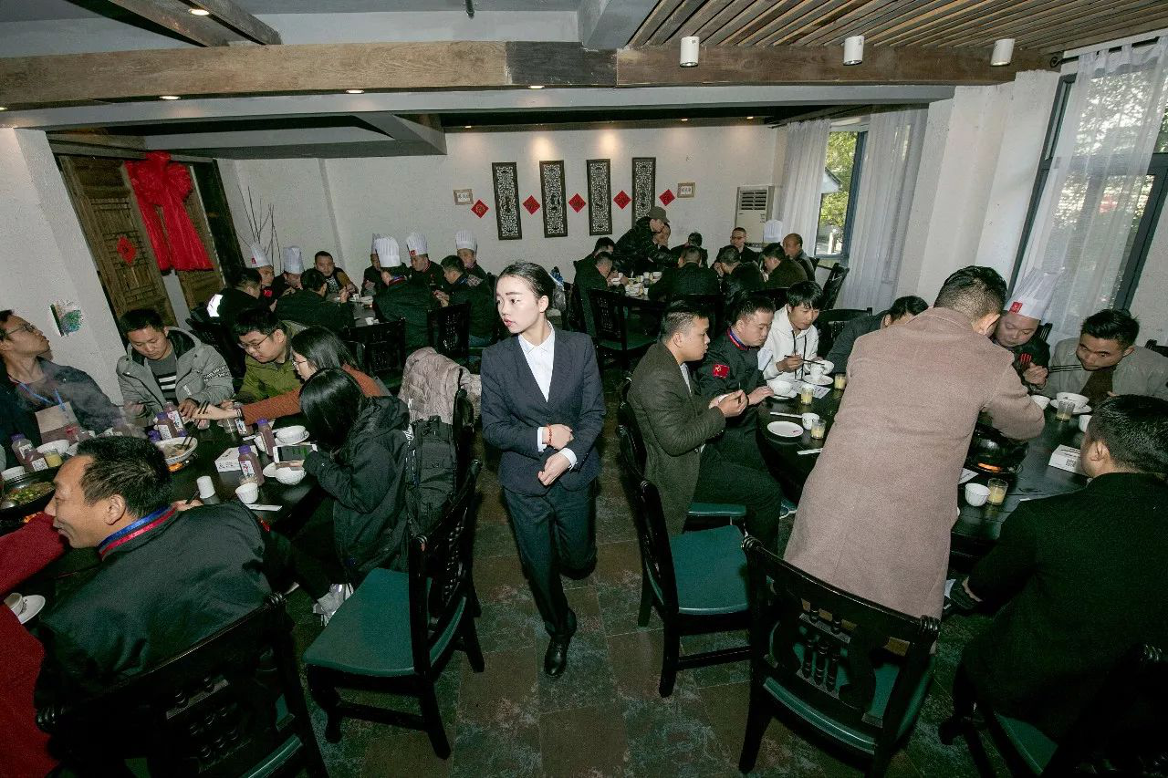 上午交流會結(jié)束后四地廚師百余位廚師精英來到秦大媽餐飲老字號用餐,秦大媽餐飲團隊帶來了不一樣的迎賓感受~